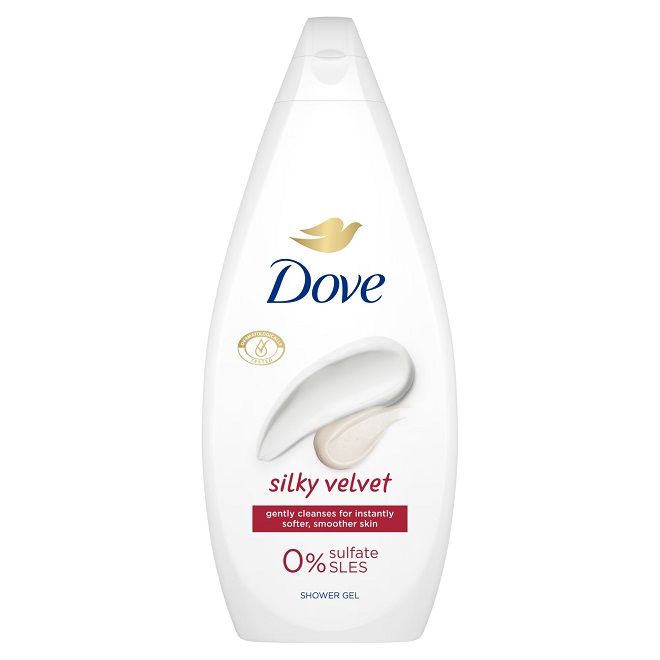 - Душ гел Dove Silky Velvet с 0% SLES сулфати нежно почиства кожата, без да засяга естественото ниво на хидратация и я оставя гладка и кадифена още от първия душ.