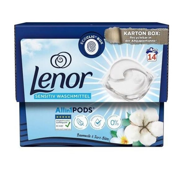 Капсули за пране Lenor 14бр Sensitive Cotton & Tiare