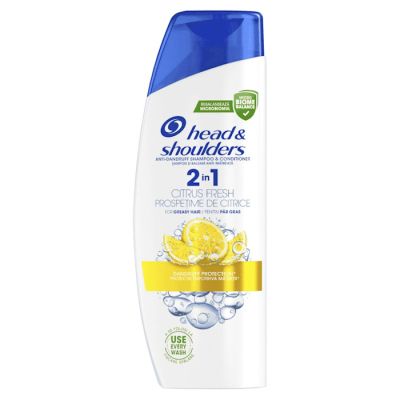 Шампоанът и балсам 2в1 против пърхот Head & Shoulders Citrus Fresh се грижи за косата, като осигурява защита на скалпа от пърхот и допринася за красива и хидратирана коса. Специалната формула с комбинация от активни съставки подобрява състоянието на косата, като придава копринена мекота и изключителен блясък. Продуктът е подходящ за мазна коса и има свеж цитрусов аромат.